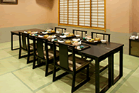 足腰の不安な方や車いすのお客様にはテーブルでの会食もご用意できます。お膳を高めに設置して、座敷椅子での会食も可能です。お気軽にご相談ください。