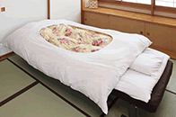 和風旅館には珍しい簡易ベッドをご用意。いつでも横になれて、簡単に立ち上がれるのが好評です。
