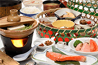 お食事はお部屋、または個室会食場で。朝夕とも他のお客様と一緒になることはありません。お料理は素材の味を活かせるよう、少し薄味です。山形の味覚を堪能してください。多品種少量のお料理でおもてなしします。