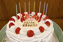いくつになってもサプライズはうれしいもの。食事のあとでも食べられる、小さめのホールケーキ(4号)もご用意できます。