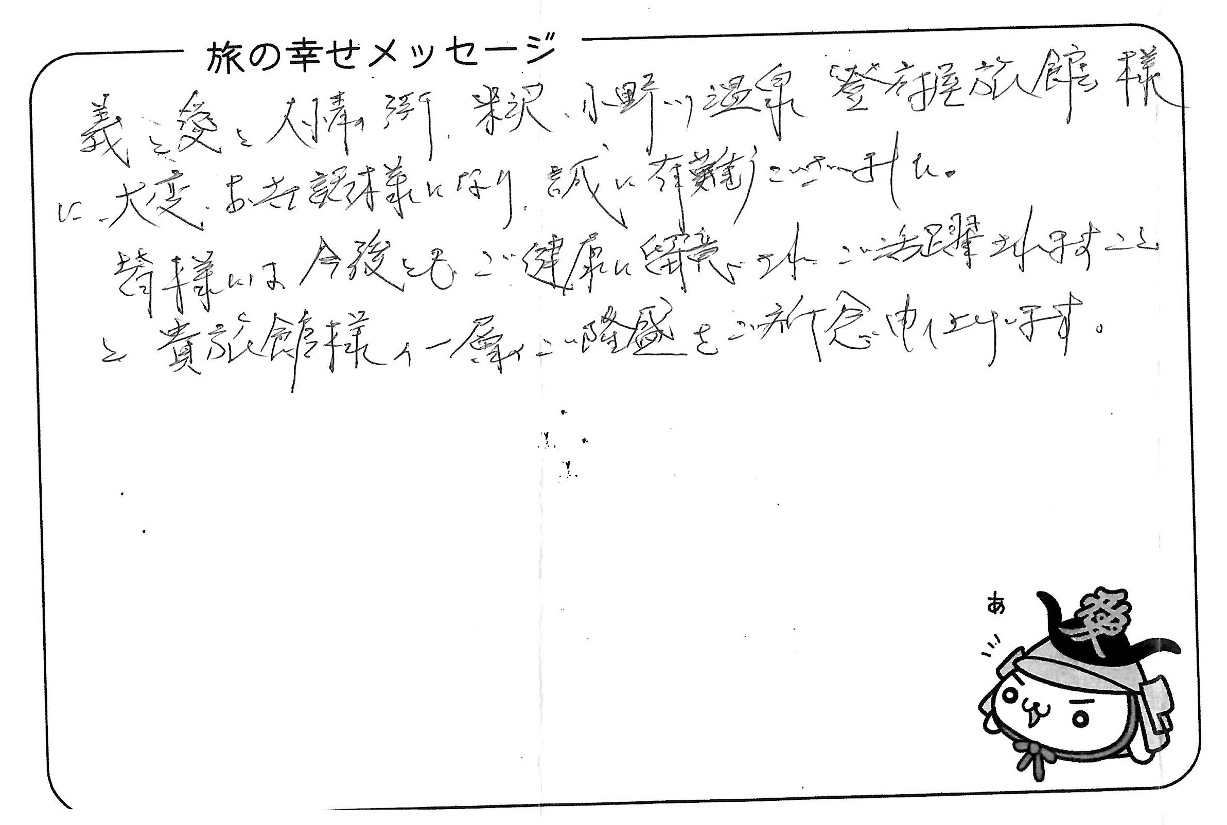 皆様には今後ともご健康に留意されご活躍されますことと貴旅館様の一層のご隆盛をご祈念申し上げます。