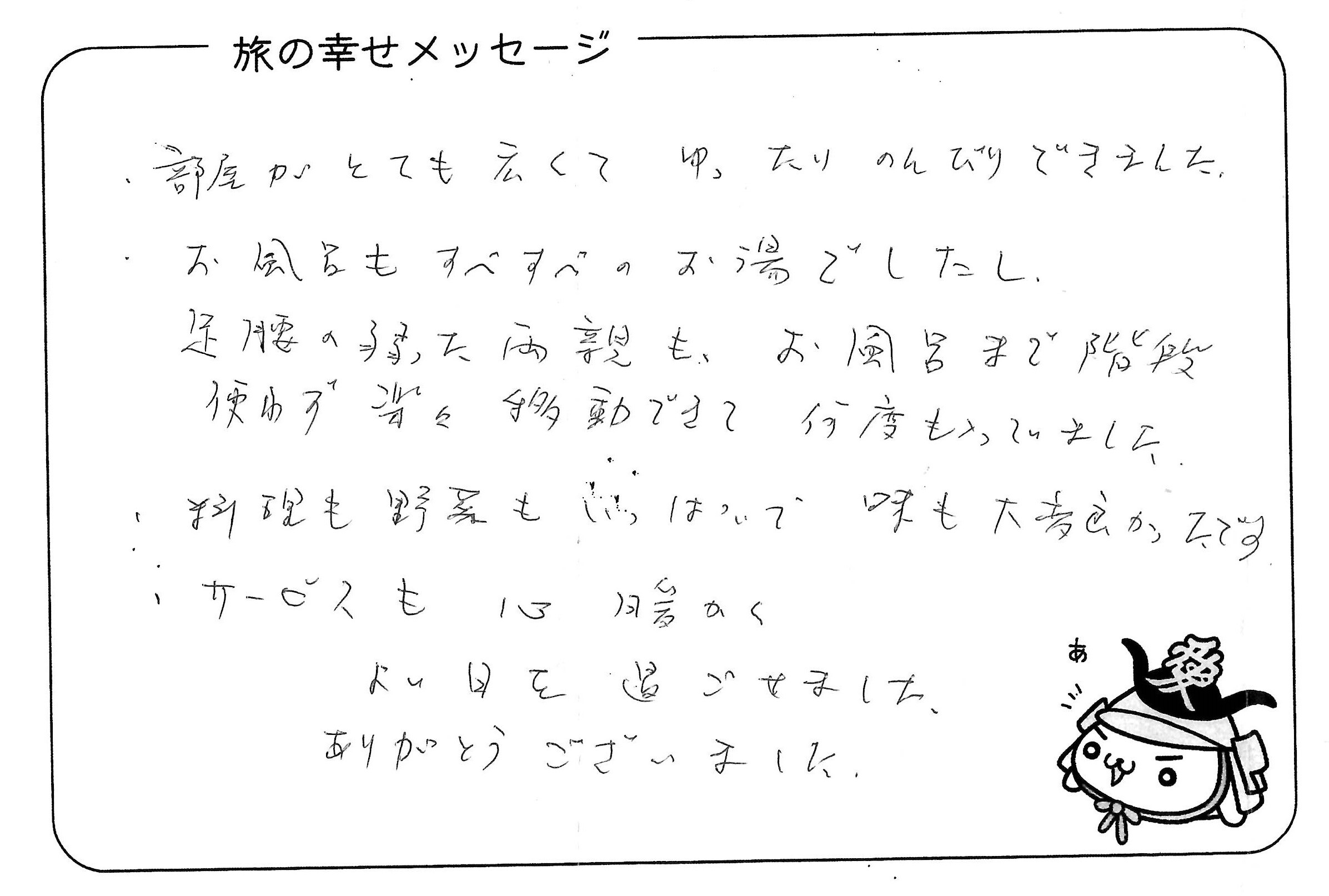 ・お風呂もすべすべのお湯でしたし、足腰の弱った両親も、お風呂まで階段使わず楽に移動できて、何度も入っていました。