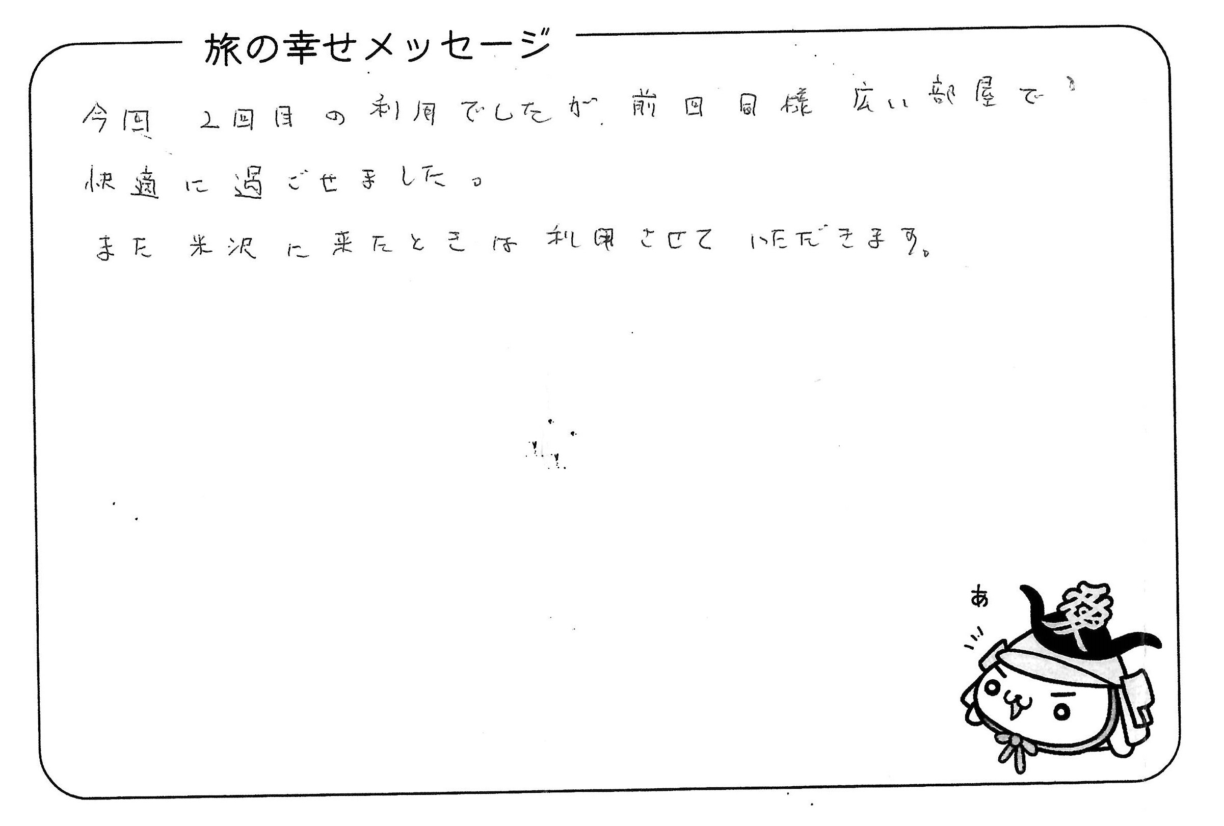また米沢に来たときは利用させていただきます。